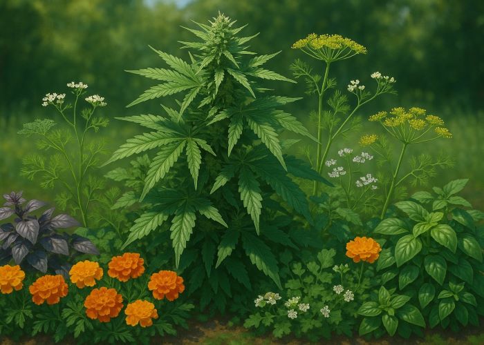 - Посев растений-компаньонов. Бархатцы, укроп, кориандр, базилик — больше чем просто ароматные соседи. Их цветы производят нектар и пыльцу, которыми питаются взрослые особи полезных насекомых: златоглазок, сирфид, паразитоидных ос. Такие растения создают «экологические островки» в пределах гроура или рядом с теплицей, формируя буферную зону биологического контроля. Чем дольше эти растения цветут — тем стабильнее поддержка союзников.