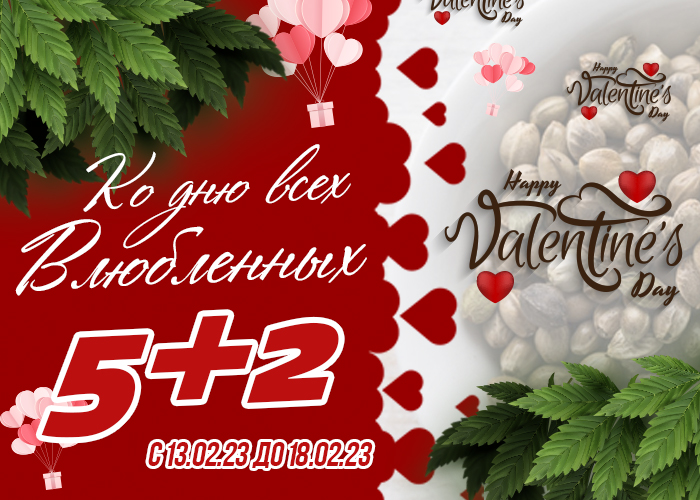 Акция будет проходить с 13.02.23 по 18.02.23. Празднуйте этот день с нами, с нашим лучшим предложением ко Дню Святого Валентина на семена конопли высшего качества!