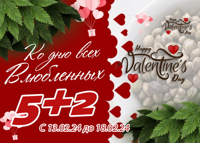Только с 13 по 18 февраля, при покупке ПЯТИ семян конопли GanjaSeeds, добавим в заказ ДВЕ семечки абсолютно БЕСПЛАТНО.